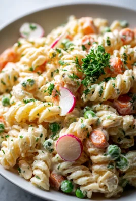 Cremiger Nudelsalat Mit Erbsen Und Möhren – dieser verführerische Salat ist der perfekte Begleiter für jede Gelegenheit! Ob als Beilage zu einem Grillfest, als leichtes Mittagessen oder als erfrischender Snack für unterwegs, dieser Nudelsalat vereint die zarte Cremigkeit einer raffinierten Sauce mit dem frischen Geschmack von knackigen Erbsen und süßen Möhren. Die Kombination aus al dente gekochten Nudeln und buntem Gemüse sorgt nicht nur für einen echten Hingucker auf dem Teller, sondern auch für ein Geschmackserlebnis, das Jung und Alt begeistert. Ideal für warme Sommertage oder gemütliche Zusammenkünfte, lässt sich dieser Salat ganz einfach vorbereiten und schmeckt am besten, wenn er ein wenig durchgezogen ist. Lass dich von der einfachen Zubereitung und dem köstlichen Ergebnis inspirieren – dein neuer Lieblingssalat wartet auf dich!