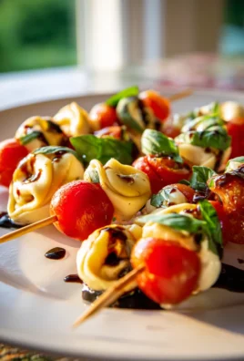 Sommerliche Caprese Tortellini Spieße mit Balsamico-Glasur