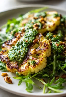 Knusprige Blumenkohl Steaks mit Mandel Pesto & Rucola