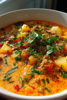 Pizzasuppe mit Hackfleisch und Kartoffeln im Slow Cooker